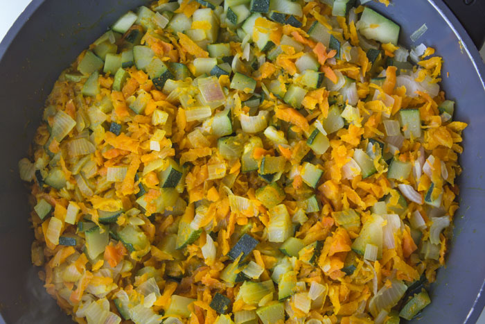 Faite suer le tout dans une poêle avec un peu dhuile dolive pendant 5 minutes environ.
